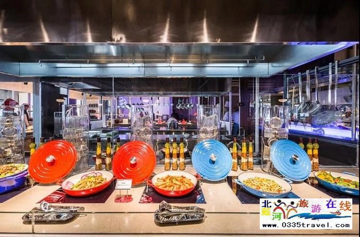 宜境國(guó)際餐廳:度假村主餐廳,提供一日三餐國(guó)際自助美食,包括咖啡烘焙、綠色鮮蔬、烤燴小站、兒童小站、甜品角等多個(gè)不同的特色區(qū)域。整體環(huán)境設(shè)計(jì)時(shí)尚、自然、歡樂(lè),采用自助餐的形式提供中外佳肴,餐廳整體口味自然、新鮮、歡樂(lè)、年輕。